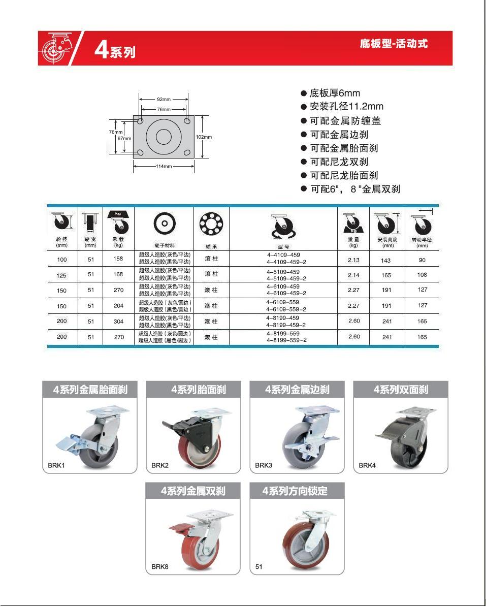 | 輪 徑: | 4寸(100mm)、5寸(125mm)、6寸(150mm)、8寸(200mm)、 |