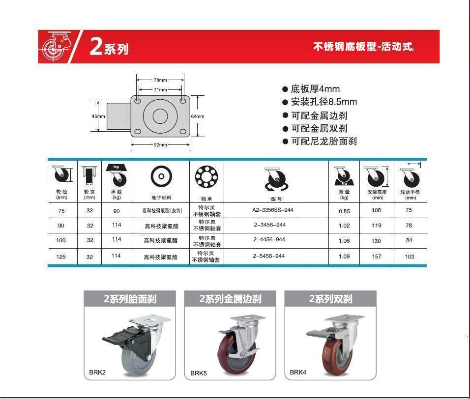 | 類 型: | 不銹鋼腳輪(80-450Kg) |