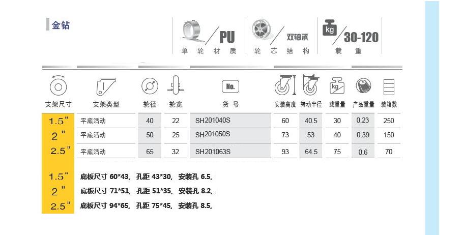 輪    徑: 1.5寸(38mm)、2寸(50mm)、2.5寸(63mm)