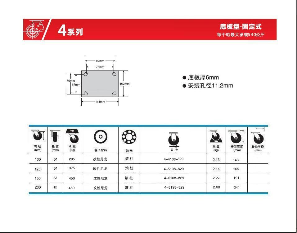 | 輪 徑: | 4寸(100mm)、5寸(125mm)、6寸(150mm)、8寸(200mm)、 |