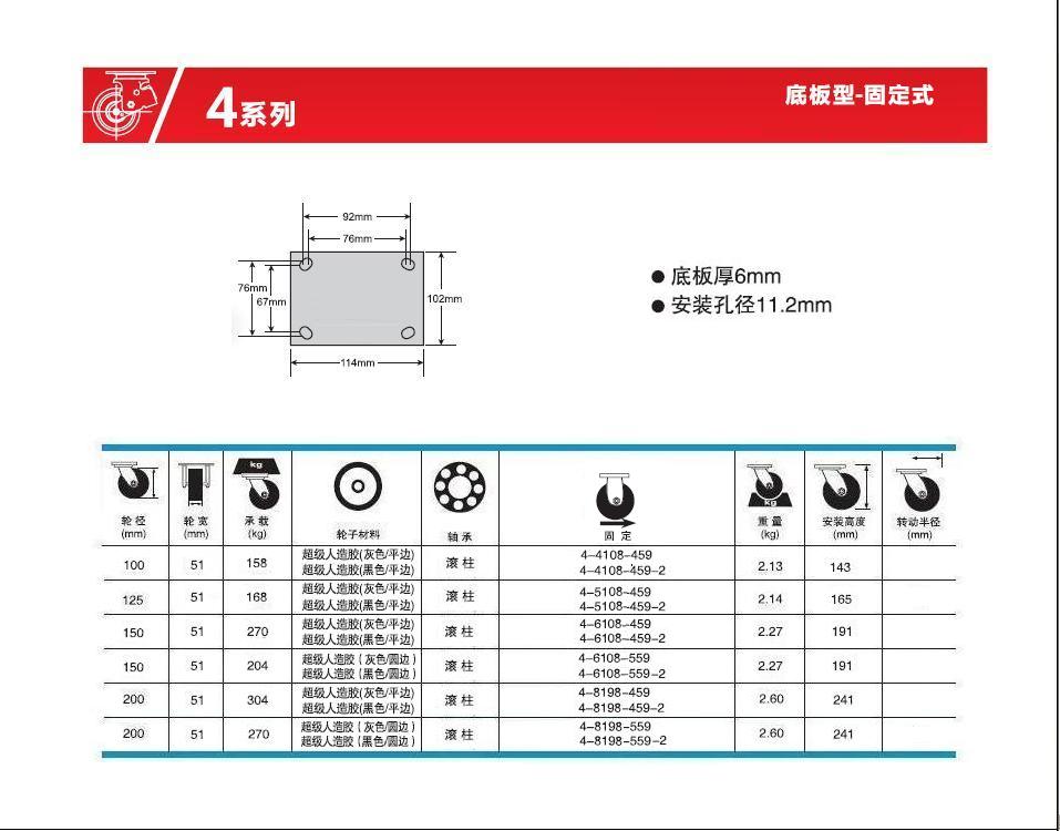 | 輪 徑: | 4寸(100mm)、5寸(125mm)、6寸(150mm)、8寸(200mm)、 |