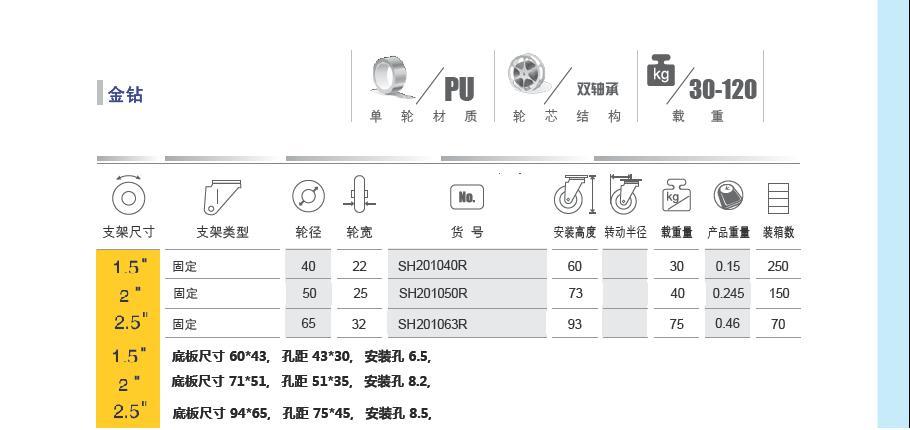 | 輪 徑: | 1.5寸(38mm)、2寸(50mm)、2.5寸(63mm) |