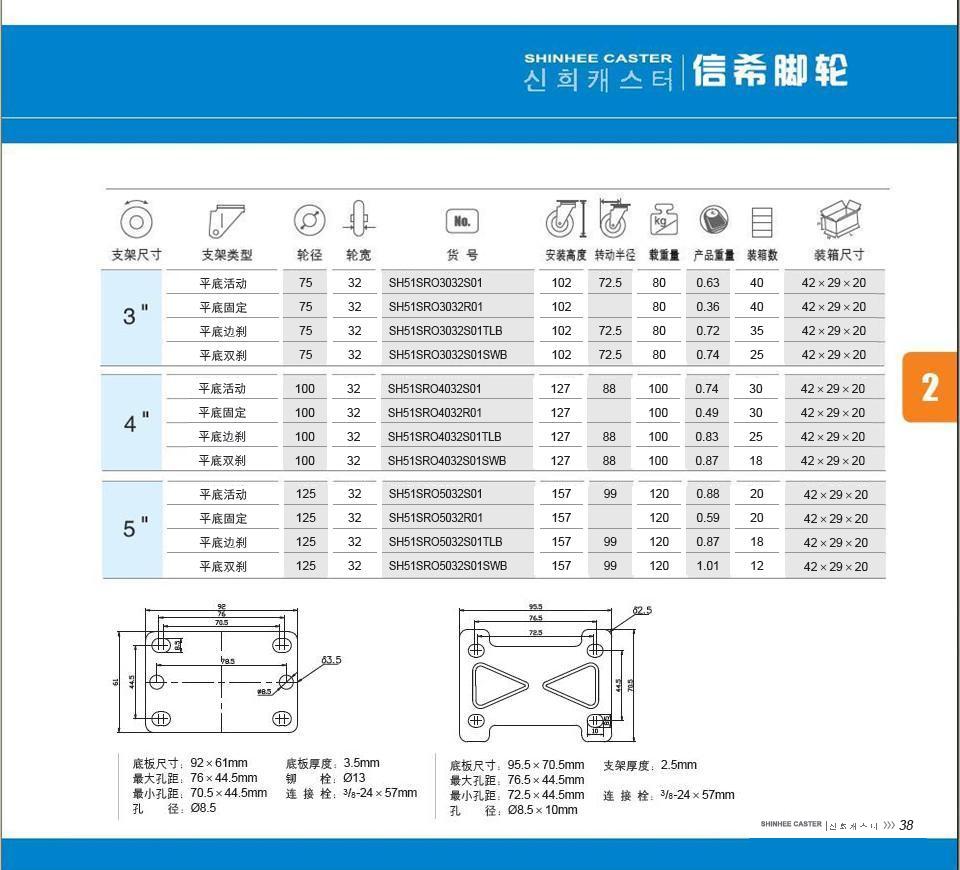 | 輪 徑: | 3寸(75mm)、4寸(100mm)、5寸(125mm) |