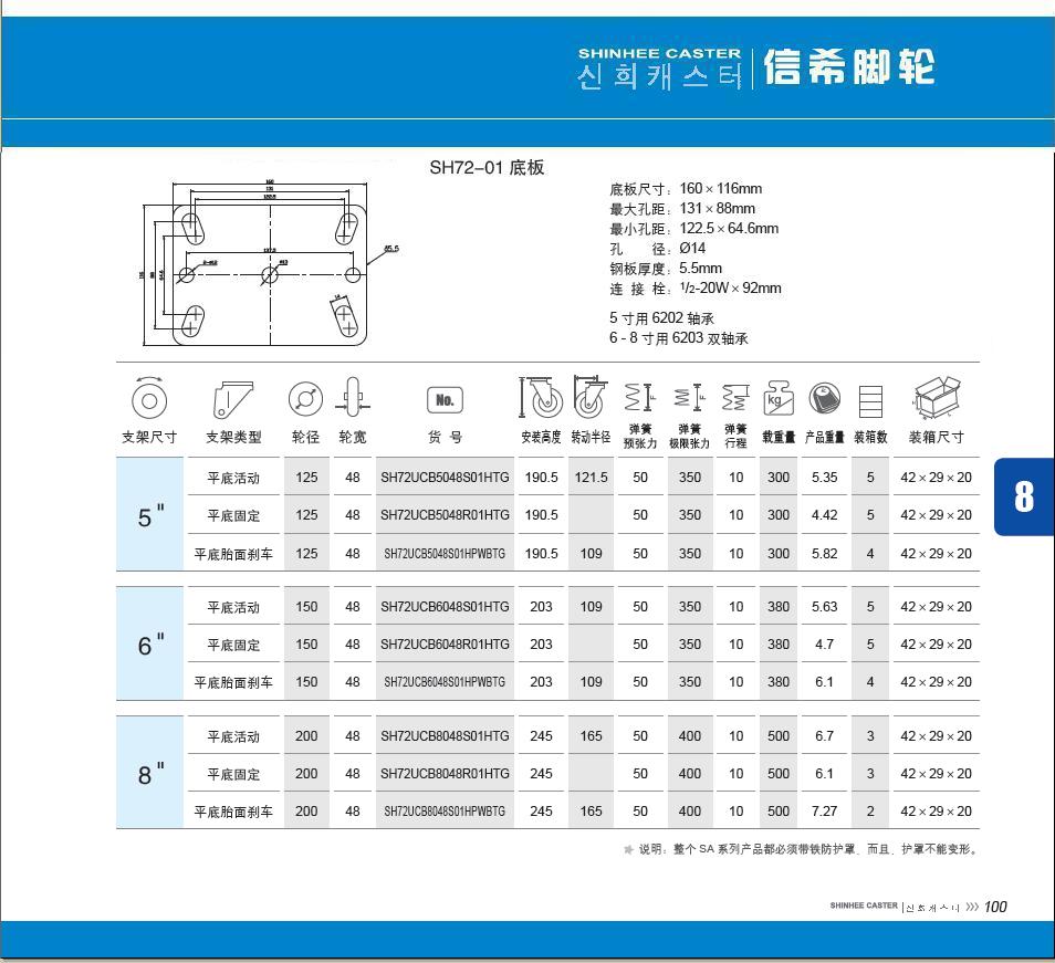 | 輪 徑: | 5寸(125mm)、6寸(150mm)、8寸(200mm) |