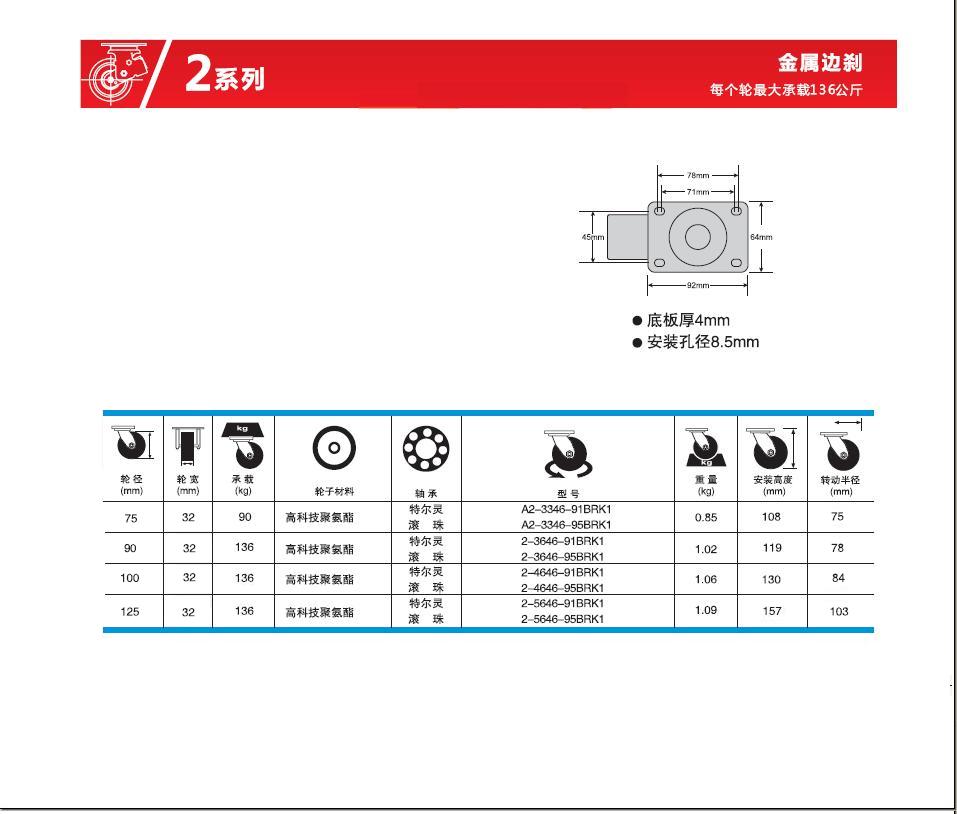 | 輪 徑: | 3寸(75mm)、3.5寸(90mm)、4寸(100mm)、5寸(125mm)、 |