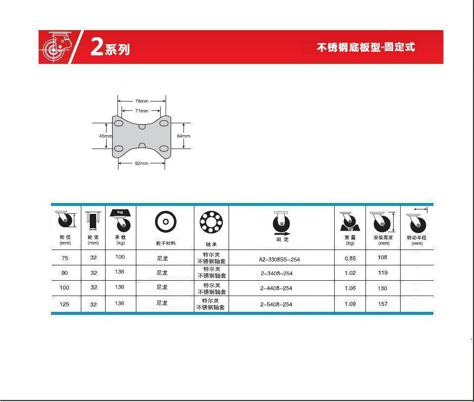 | 類 型: | 不銹鋼腳輪(80-450Kg) |
