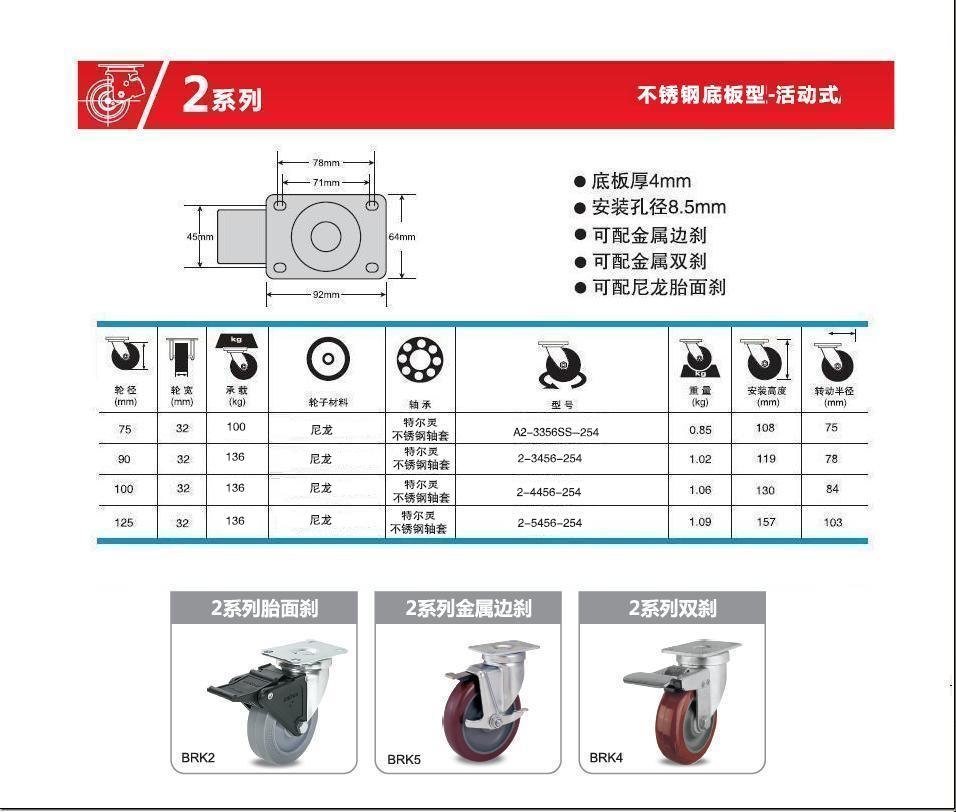 | 類 型: | 不銹鋼腳輪(80-450Kg) |